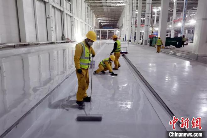 沈阳铁西宝马新工厂涂装车间项目室内环氧地坪施工现场。中建五局东北公司供图